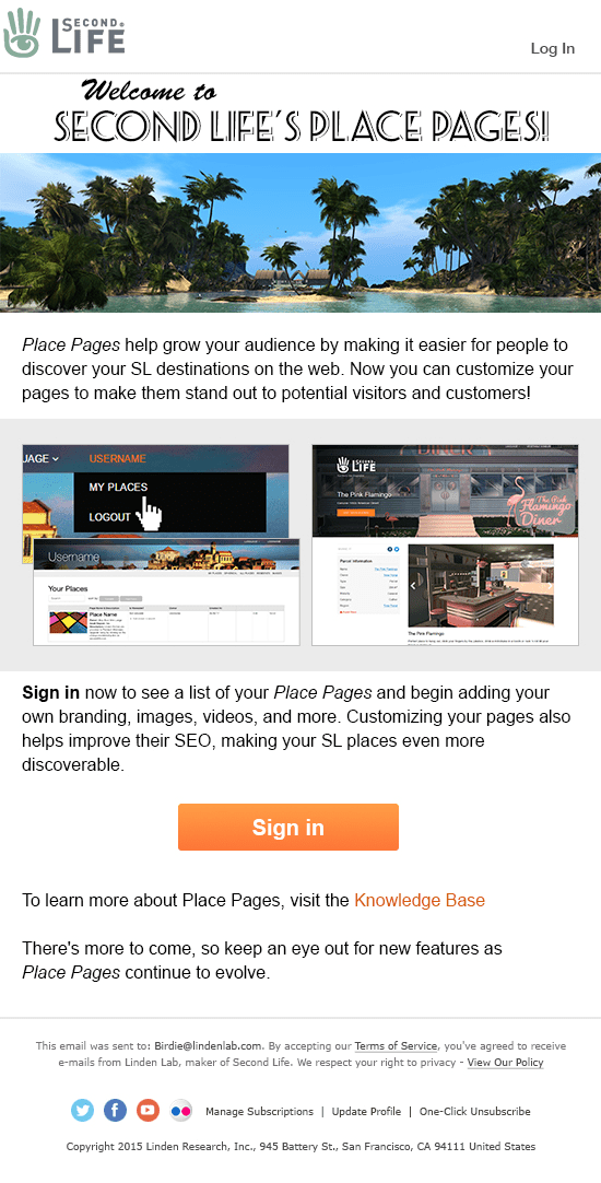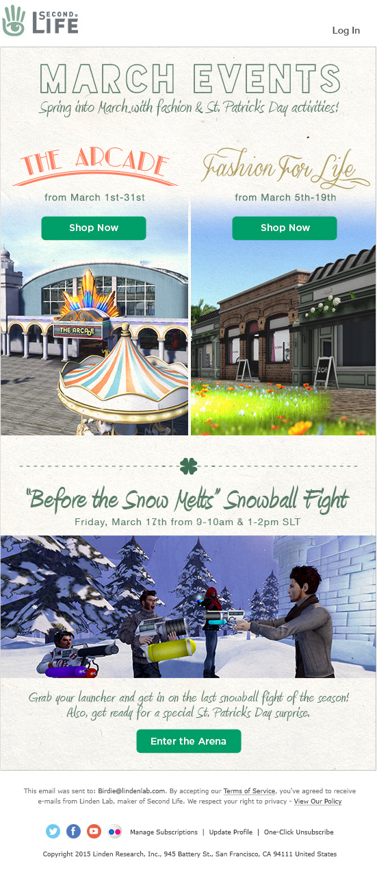 Linden Lab, a pioneer in online gaming and open-world experiences, needed to maintain and enhance the web presence for their flagship product, Second Life. As a 14-year-old platform with over a million active accounts, Second Life required constant website updates to support its vibrant virtual community. The web components (Marketplace, Destination Guide, Community, and Place Pages) were critical for user engagement, commerce, and discovery outside the in-world experience. As the only dedicated visual designer on the marketing team, I was responsible for a diverse range of design projects across multiple channels.